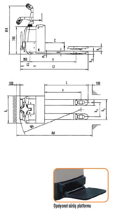 Çok vardiyalı kullanımlarda akünün akünün hızlı bir şekilde değiştirilebileceği yan akü kapağı bulunur.