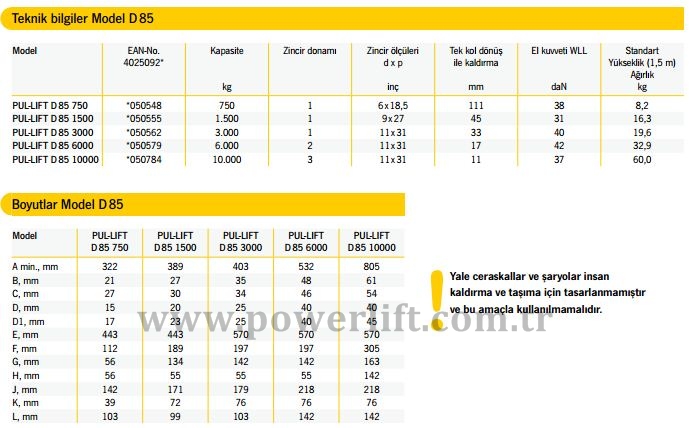 • Her iki yönde ceraskal boyunca yükü hızlı bir şekilde bağlamak veya zinciri çekmek için serbest zincirleme tertibatı.