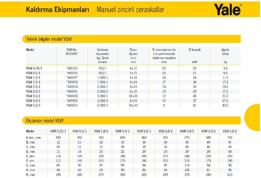 YALE MANUEL CARASKALLAR 0,25T - 5T ARASI