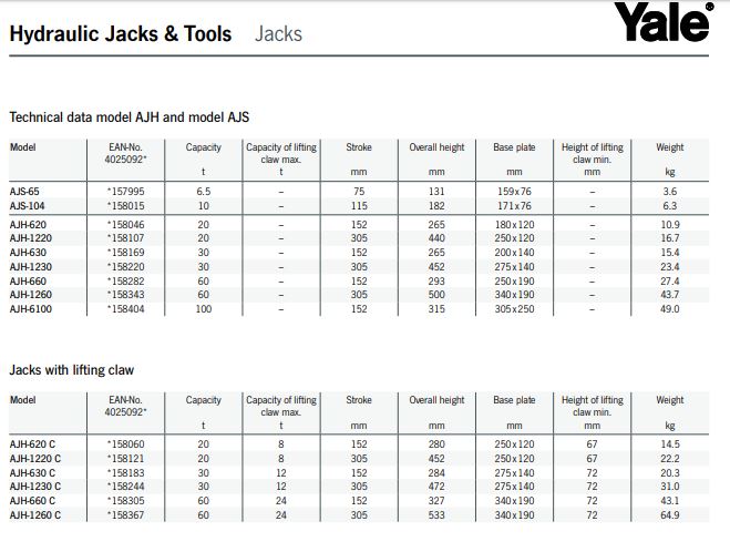 YALE ALÜMİNYUM MAKİNA KRİKOSU AJH - AJS