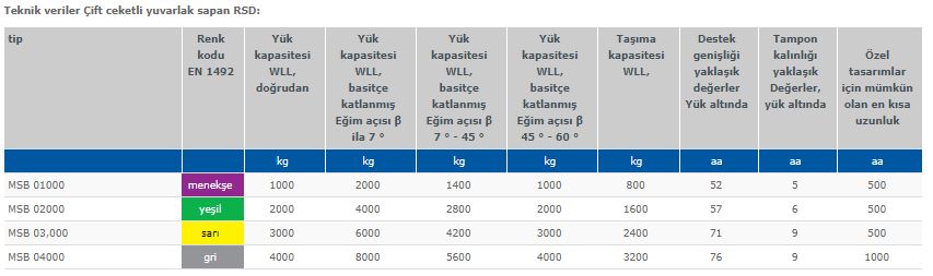 - Dokuma tambur şeritleri, ton yükleme kapasitesi başına 1 şerit (sadece 10 tona kadar olan yuvarlak sapanlar için geçerlidir).