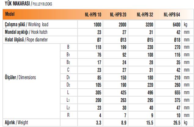 Kancanın çekim yönüne hareketi kasnak bloğunu güvenli bir şekilde kilitler.