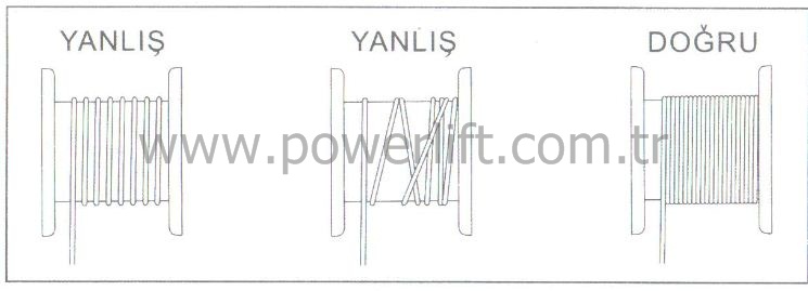 Elektrikli vinci çalıştırmadan önce ve çalışma esnasında çelik halatın makaraya düzgün şekilde sarıldığından emin olunuz.