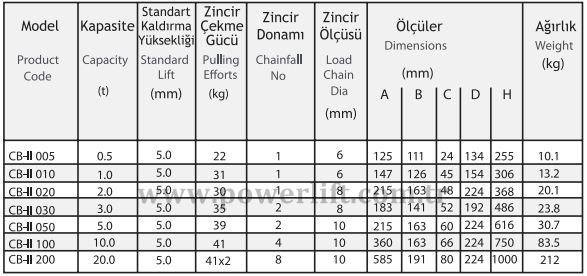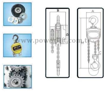 * Dövme ve ısıl işlemli kanca,* Asbestsiz fren balatası,* Dövme emniyet mandalı,* Hafif ve kullanışlı,* Dış saha kullanımına uygundur,* Az bakım gerektirir,* Rud zincir EN818-8-T sahiptir.